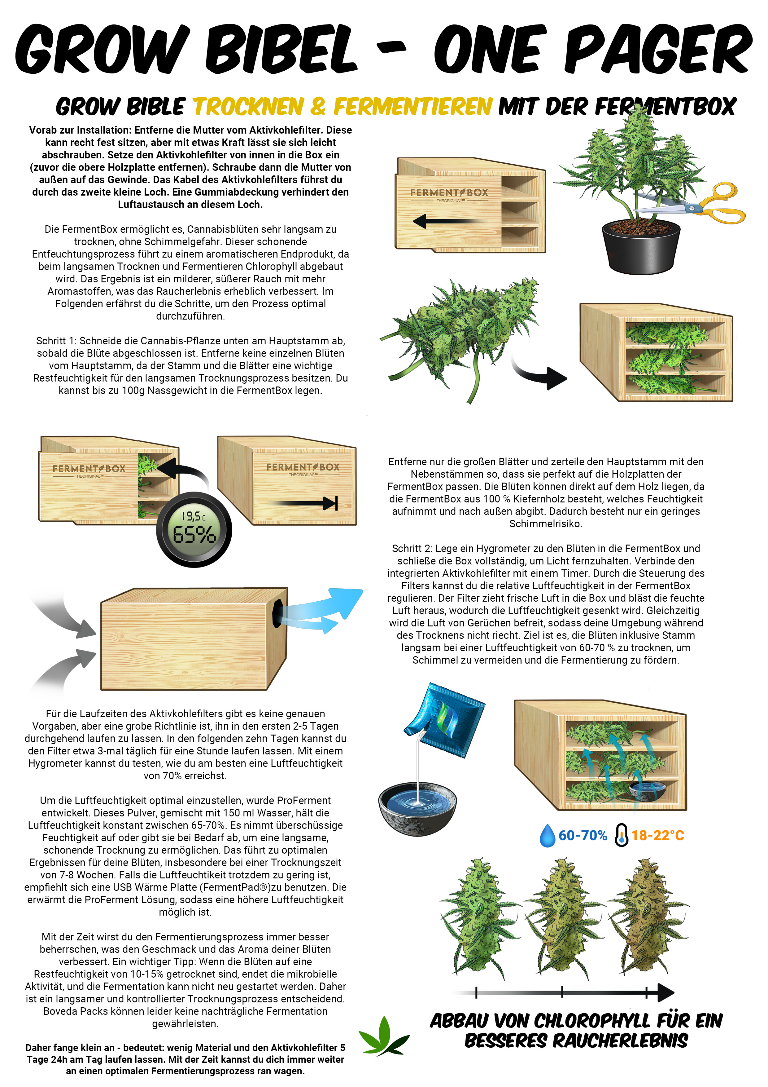 Während des Curings werden unerwünschte Pflanzenstoffe wie Chlorophyll und Zuckerreste langsam abgebaut. Gleichzeitig stabilisieren sich Terpene und Cannabinoide, was zu: