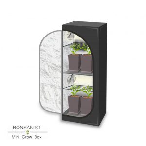 The Bonsanto® Mini-Grow-Box 2 tier tent is THE innovation and world first in the indoor grow tent sector. With 2x LED Bonsanto fullspectrum grow lights (70/35 Watt - SAMSUNG LED chips) as well as 2x Bonsanto® activated carbon filters the Cultivation & harvesting of up to 8 plants enabled!