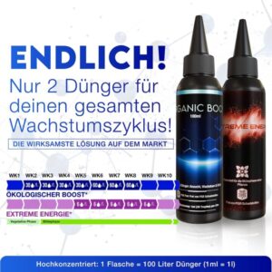 Gesunde Pflanzen benötigen die richtigen Nährstoffe, um in jeder Phase ihres Wachstums optimal zu gedeihen. Spezialisierte Grow-Dünger unterstützen sie sowohl in der Wachstumsphase als auch während der Blüte, indem sie ihnen die nötigen Mineralien und Mikronährstoffe liefern. In einer kompakten Growbox wie der 60x60x180 cm entfalten diese Dünger ihre Wirkung besonders effizient, da alle Ressourcen gezielt und direkt genutzt werden. Besonders empfehlenswert sind Dünger wie Organic Boost, der speziell für das vegetative Wachstum entwickelt wurde und den Pflanzen dabei hilft, stark und gesund zu wachsen. Extreme Energy ist ideal für die Blütephase, da er das Blütenwachstum fördert und so zu einem höheren Ertrag führt. Ein weiterer hervorragender Dünger ist Flower Fuel, der den Blütenansatz intensiviert und ebenfalls den Ertrag steigert. Mit diesen spezialisierten Düngern sorgst du dafür, dass deine Pflanzen in jeder Phase des Wachstums optimal versorgt werden.
