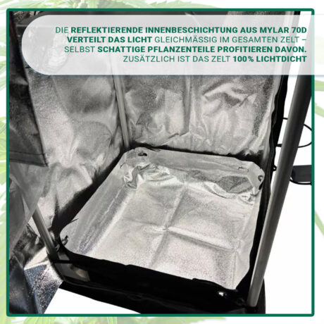 - Effiziente Lichtreflexion durch Mylar-Innenbeschichtung