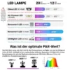 Die Güte einer LED-Lampe wird über den PAR-Wert (PPFD, μmol/(s·m²)) beschrieben.