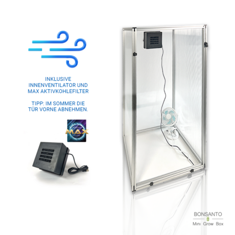 Unsere Bonsanto Outdoor Growbox enthält bereits alle Grow-Elemente, die du für dein Outdoor Growing benötigst! Mit dem integrierten Solarmodul ermöglichen wir autarkes Wachstum an jedem beliebigen Ort, und das ganz ohne lästige Stromkosten. Ein Ventilator ist ebenfalls im Lieferumfang enthalten, der nicht nur die Luftzirkulation in der Box verbessert, sondern auch das gesunde Gedeihen deiner Hanfpflanzen fördert. Darüber hinaus unterstützt der Ventilator den Transport von CO2 zu den Pflanzen, was für die Photosynthese unerlässlich ist und zu größeren Erträgen führen kann. Der Max Aktivkohlefilter von Bonsanto enthält hochwertige Aktivkohle, die zuverlässig unerwünschte Gerüche eliminiert und eine optimale Feuchtigkeitskontrolle in der Growbox Outdoor gewährleistet.